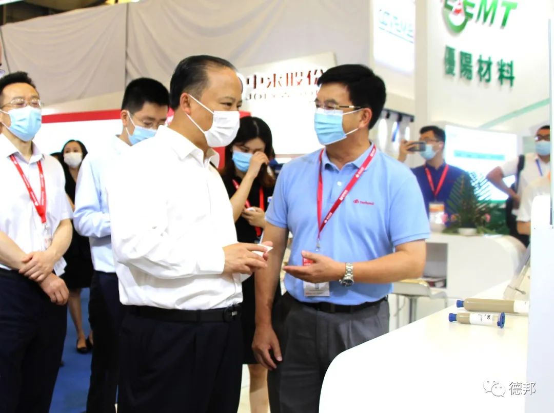 全國人大代表、通威集團董事局主席劉漢元先生,在開展首日來訪德邦展臺,就德邦疊瓦導電材料與陳田安博士展開了深度的交流。