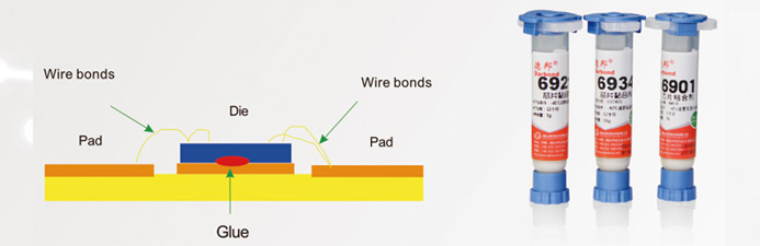 主要應(yīng)用于LED封裝中的固晶工序,分為導(dǎo)電和非導(dǎo)電兩種,導(dǎo)電固晶膠以環(huán)氧體系為主。導(dǎo)電固晶膠以有機(jī)硅體系為主。